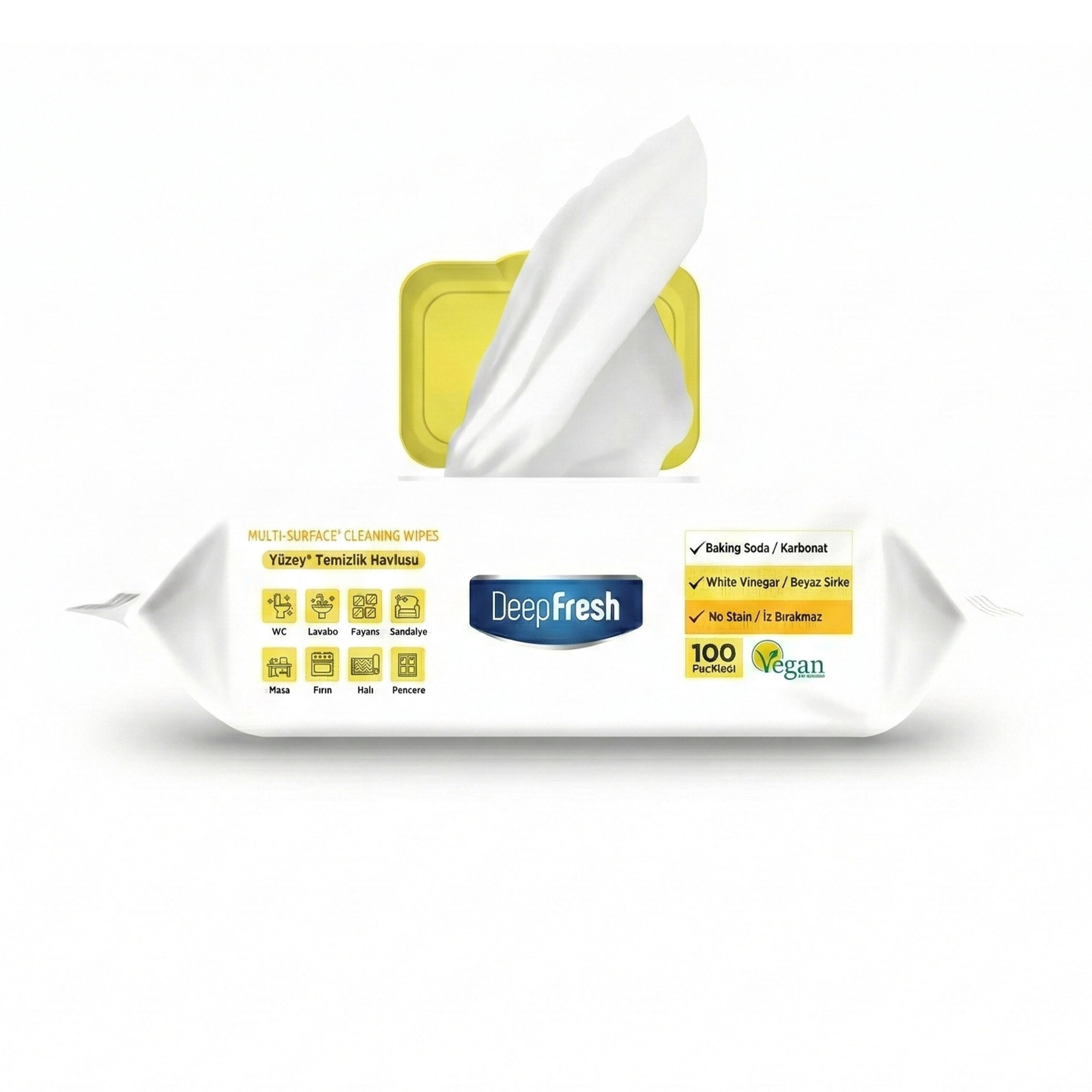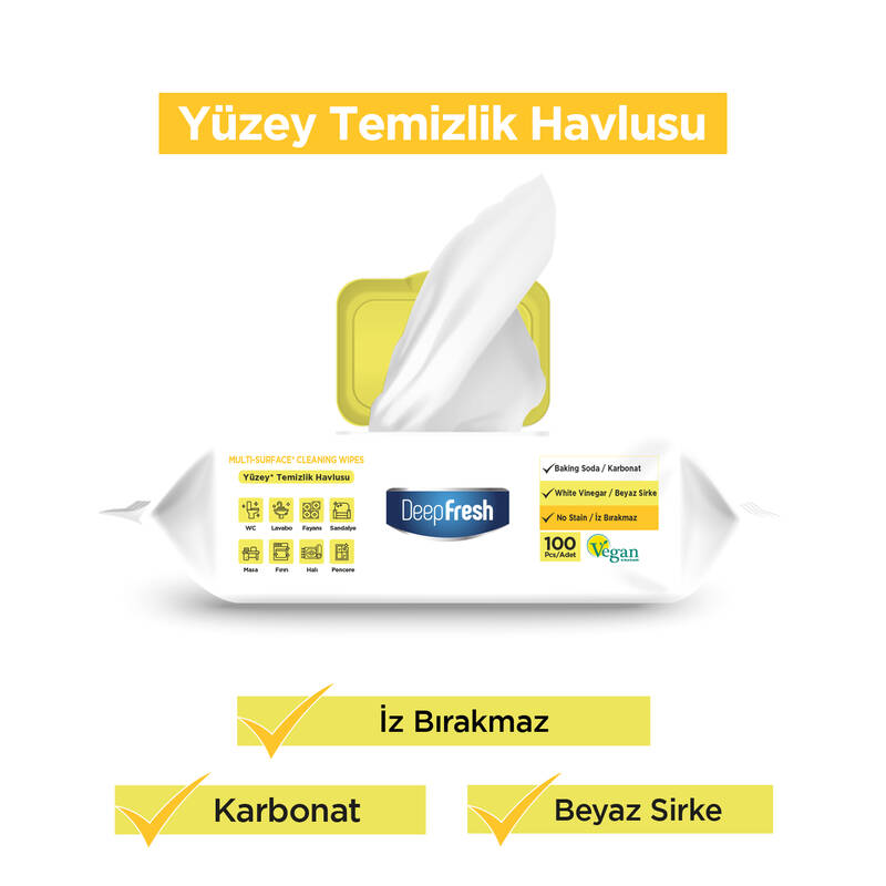 İz Bırakmaz Yüzey Temizlik Havlusu 100 Yaprak 3 Adet | Beyaz Sabun Kokulu | Karbonat, Beyaz Sirke